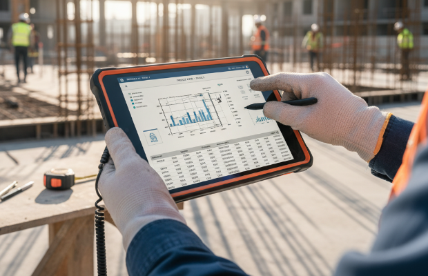 クラウドベースの施工管理システムにより、現場とオフィスの情報をリアルタイムに共有。写真管理・帳票作成・出来形管理などを一元化し、書類作成の手間を大幅に削減します。北海道のように広域に複数現場を抱える場合に特に効果を発揮します。